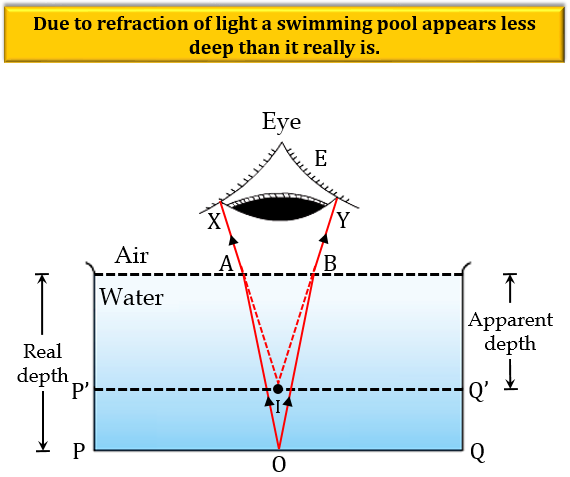 光的折射是導致游泳池看起來比實際淺的現象。