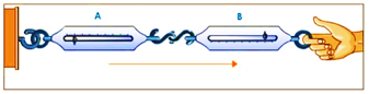 3. 作用在第一個物體 A 上的力的方向與作用在第二個物體 B 上的力的方向相反。
