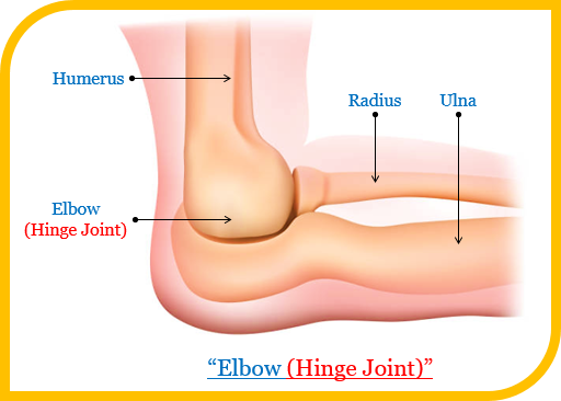 肘部是肱骨(上臂)和橈骨及尺骨(前臂)之間滑膜鉸鏈關節的一個例子,它只允許前臂和手在一個方向上移動,即遠離身體的前方。