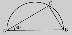 在以AB為直徑的半圓上,取一點C,使得∠CAB = 30°。求∠ACB和∠ABC的度數。