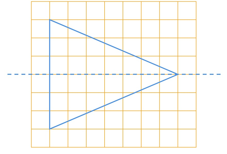 (a) 一個具有水平對稱線但沒有垂直對稱線的三角形。