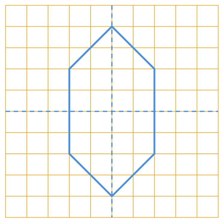 (提示:如果先畫出對稱線,然後再完成圖形,將會很有幫助。)