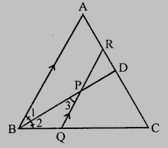 設$P$是角$\angle ABC$的角平分線上的一個點。如果過$P$且平行於$AB$的直線交$BC$於$Q$,證明三角形$BPQ$是等腰三角形。