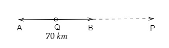 設當兩車沿相同方向行駛時在 P 點相遇,當兩車相向行駛時在 Q 點相遇。