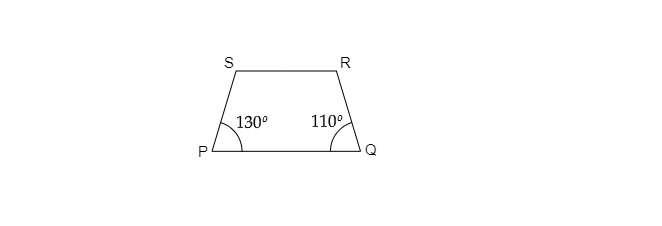 已知:$PQRS$是一個梯形,其中$PQ \parallel SR$,$\angle P=130^{\circ}, \angle Q=110^{\circ}$。