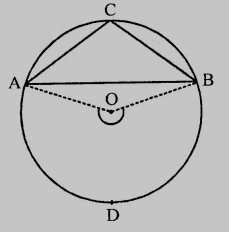 弧ADB在圓心處構成∠AOB,在圓周其餘部分構成∠ACB。