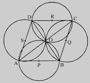 我們必須證明菱形的四條邊作為直徑的圓都經過其對角線的交點。