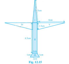 Radha用彩色紙做了一架飛機的圖片,如圖12.15所示。求用紙的總面積。