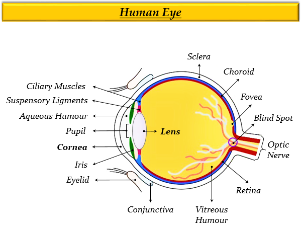 眼睛中的光線折射發生在:(a) 僅在晶狀體 (b) 僅在角膜 (c) 角膜和晶狀體 (d) 瞳孔