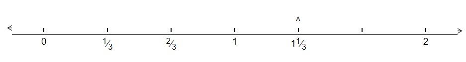 如果我們必須在數軸上表示分數$\frac{4}{3}=1\frac{1}{3}$,我們需要將1和2之間的線段分成三個相等的部分。