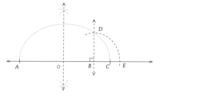 4. 在點 $B$ 處畫一條垂直線,它在半圓處與點 $D$ 相交。