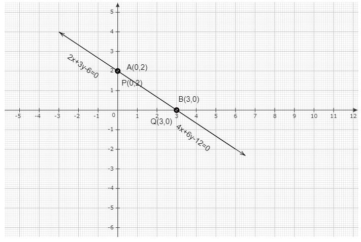 直線 AB 表示方程 2x + 3y - 6 = 0,直線 PQ 表示方程 4x + 6y - 12 = 0。