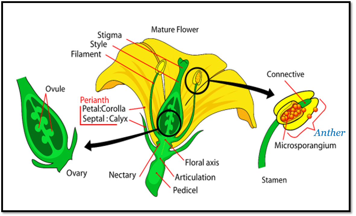(ii) 花柱、柱頭和子房是花的雌性部分,而花絲被認為是花的雄性部分。