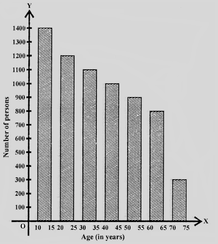 研究圖中所示的某鎮不同年齡組人數的條形圖。觀察條形圖並回答以下問題