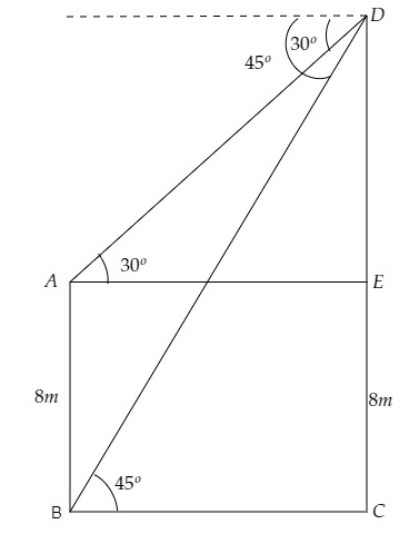 AB=8 m, ∠DAE=30°, ∠DBC=45°