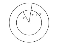 一個圓形的面積是\( 616 \mathrm{~cm}^{2} \)。圓周邊緣有一條寬\( 2 \mathrm{~m} \) 的路。