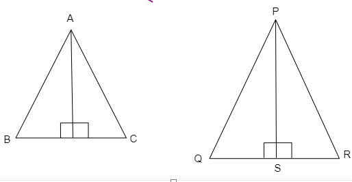 考慮兩個相似三角形,$ΔABC$ 和 $ΔPQR$,$AD$ 和 $PS$ 分別是 $ΔABC$ 和 $ΔPQR$ 的高。