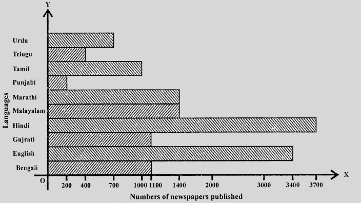 印地語、英語、烏爾都語、旁遮普語和孟加拉語報紙的總髮行量 = 3700 + 3400 + 700 + 200 + 1100