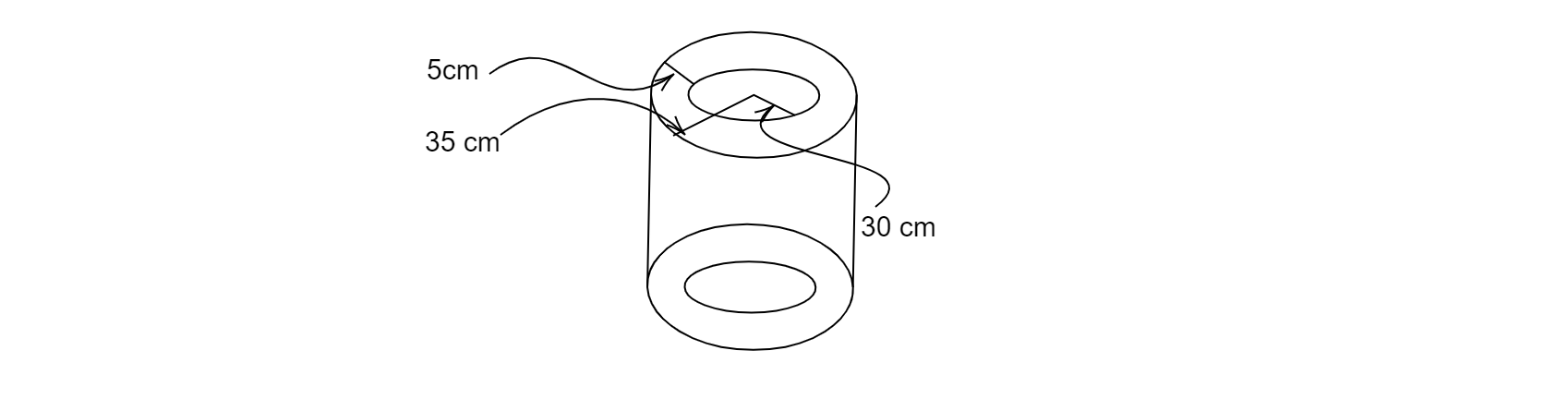 圓柱形管道的體積 = π(r₁² - r₂²)l