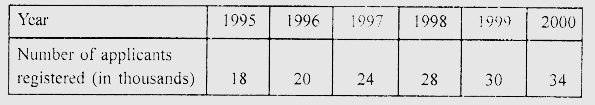 以下資料給出了1995年至2000年期間在就業交易所註冊的求職者人數(以千人為單位)