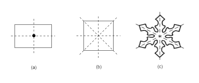 解答:為了檢查對稱性並找到它們的對稱軸,我們將繪製穿過每個圖形中心點的幾條線。
