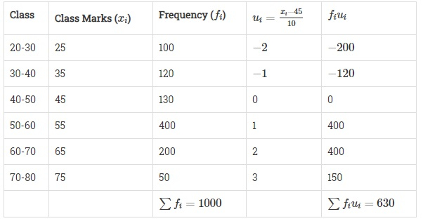平均值 $=A+h \times \frac{\sum{f_iu_i}}{\sum{f_i}}$
