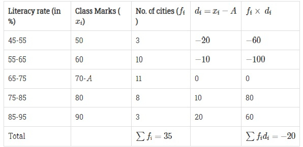 平均值 $=A+\frac{\sum{f_id_i}}{\sum{f_i}}$