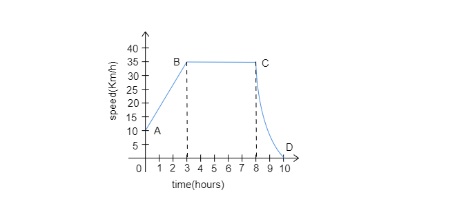 (i). 由於圖表的斜率從表示10公里/小時的A點開始,因此汽車的初始速度為10公里/小時。