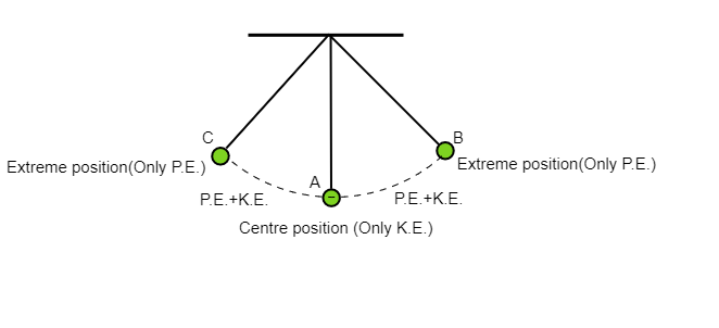一個簡單擺的擺球被移到一個極端位置B,然後釋放。它擺向中心位置A,然後擺向另一個極端位置C。在哪個位置擺球具有