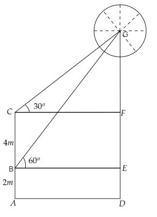 某一時刻,從這兩個窗戶觀察到一個氣球的仰角分別為 60° 和 30°。