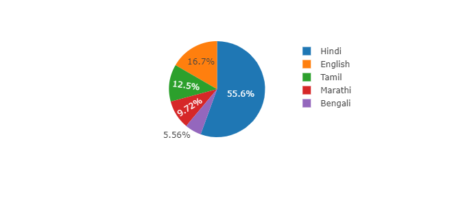 | 語言 | 印地語 | 英語 | 馬拉地語 | 孟加拉語 | 泰米爾語 |