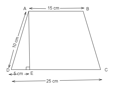 梯形的平行邊長分別為 25 釐米和 15 釐米。它的非平行邊相等,每條長 10 釐米。求梯形的面積。