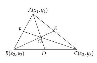 - 點 A(x₁, y₁)、B(x₂, y₂) 和 C(x₃, y₃) 是△ABC 的頂點。求中線 BE 和 CF 上分別位於 Q 和 R 處的點的座標,使得 BQ:QE = 2:1 且 CR:RF = 2:1。