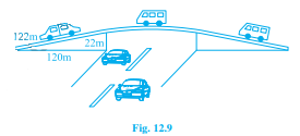 立交橋的三角形側牆被用於廣告。牆的邊長分別為\( 122 \mathrm{~m}、22 \mathrm{~m} \)和\( 120 \mathrm{~m} \)(見圖 12.9)。廣告每年每平方米可帶來₹ 5000 的收入。一家公司租用了其中一面牆 3 個月。它支付了多少租金?