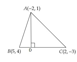 三角形ABC的頂點分別為(-2, 1), (5, 4)和(2, -3)。
