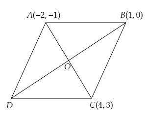 - 點(3, -4)和(-6, 2)是平行四邊形一條對角線的端點。如果第三個頂點是(-1, -3)。求第四個頂點的座標。