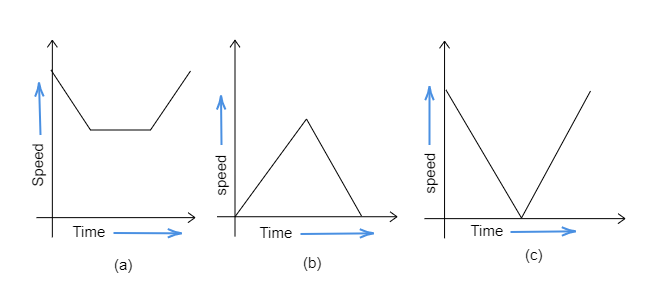 (i). 在圖 (c) 中,顯示了一個豎直向上丟擲的球的速度。首先,速度減小並在最高點變為零,然後開始增加,球的速度在投球手手中最大。