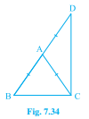 \( \triangle \mathrm{ABC} \) is an isosceles triangle in which \( \mathrm{AB}=\mathrm{AC} \). Side \( \mathrm{BA} \) is produced to \( \mathrm{D} \) such that \( \mathrm{AD}=\mathrm{AB} \) (see Fig. 7.34). Show that \( \angle \mathrm{BCD} \) is a right angle.