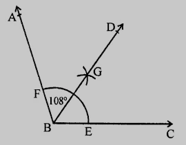(i) 使用量角器畫一個 $\angle ABC = 108^o$ 的角。