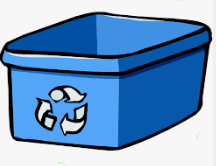 藍色垃圾桶用於處理可回收的幹垃圾,例如報紙、紙板、塑膠包裝、瓶子、罐頭等。