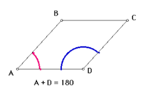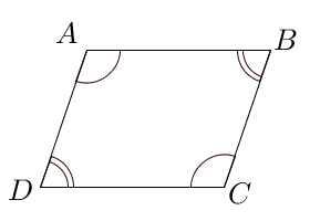在上面的平行四邊形中,∠A = ∠C 並且 ∠B = ∠D
