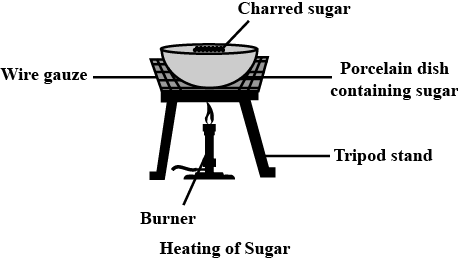 當糖連續加熱後,會形成黑色的粉末狀物質。這是一種化學變化。