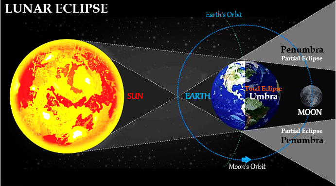它只能在滿月之夜發生,且僅在三個天體(即太陽、地球和月亮)完全或非常緊密地排列在一起時發生,其中地球處於這兩個天體(太陽和月亮)之間。它們以這樣的方式排列,以致地球的位置在其投射在月亮上的陰影上,讓月亮呈現紅褐色。