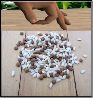 - 從米飯中分離出扁豆。(根據顏色和形狀)