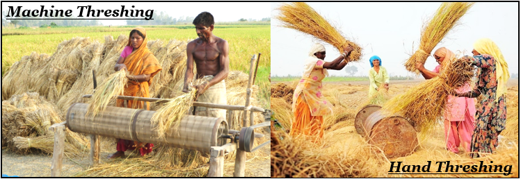 2. 它是收穫後的下一個過程,其中將小麥或稻穀的莖和穀殼與穀物分離。