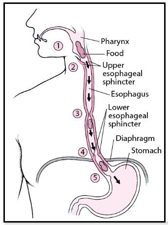 食物不會僅僅透過食道落入胃中。食道的壁透過稱為蠕動的有節奏的肌肉收縮來推動食物進入胃。