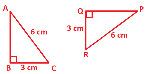 根據 RHS 法則,如果直角三角形的斜邊和一邊等於另一個直角三角形的對應斜邊和一邊,則認為這兩個直角三角形全等。