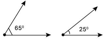 上述兩個角互為餘角,因為 65° + 25° = 90°。