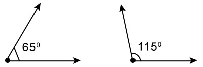 上述兩個角互為補角,因為 65° + 115° = 180°。