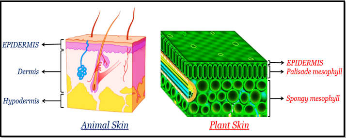 - 植物的葉子、根、莖、花、果實和種子都被形成表皮的單層細胞覆蓋。